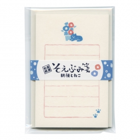 そえぶみ箋 美濃和紙【朝顔とねこ】夏柄 かわいい