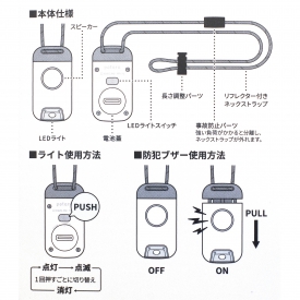 防犯ブザー付きポータブルライト potara/ポタラ【クロ】