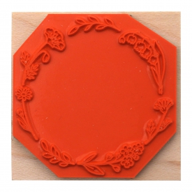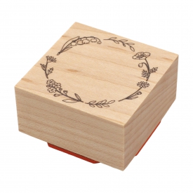 スズランやワスレナグサ、ヒナゲシなど春の野の花のリースを繊細に描いたリーススタンプです。