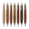 木軸ペン工房KIKIさんの筆記具たちです。杢目を堪能できるやや太めの軸が特徴のペンに、それらを飾っておける10本用のペン立てもございます。