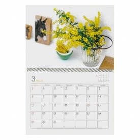 毎月季節に合わせた花と雑貨を組み合わせた写真が登場するフラワーシーンカレンダー。色とりどりの花が心を和ませてくれる、リュリュさん人気のカレンダーです。