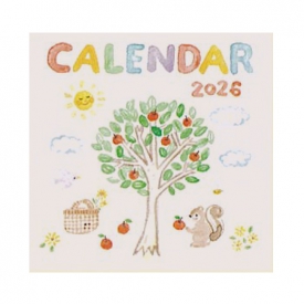 淡い水彩タッチの壁掛けカレンダー。日常の優しいイラストに毎月癒やされます。コンパクトな正方形サイズで六曜入り。
