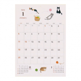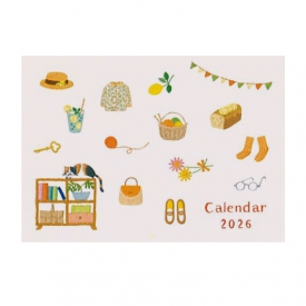 刺繍のような手触りと日常を感じさせるイラストの壁掛けカレンダー。日々の暮らしを彩る温かみのある小物や動物たちが、毎月登場して和ませてくれます。