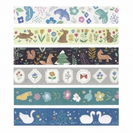 マスキングテープ 北欧フォレスト 15mm幅【花とうさぎ】