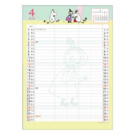 ムーミンのイラスト入りで毎月異なる絵柄を楽しめます。最大で家族4人分を書き分けられるライン入りです。(みんなの予定欄も使用すると5人分)