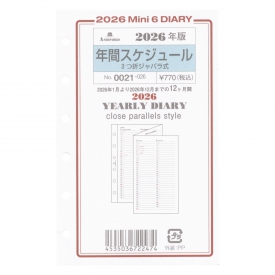 2026年 ミニ6穴サイズ 年間スケジュール 3ツ折ジャバラ ...