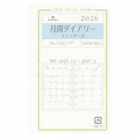 2026年 ミニ6穴サイズ 月間ダイアリー カレンダー式 シ ...