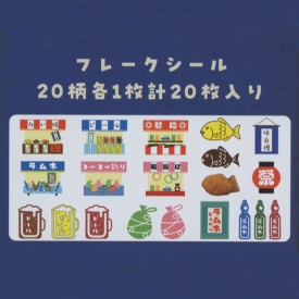 夏の縁日をテーマにした、レトロな雰囲気の和紙素材のフレークシールです。