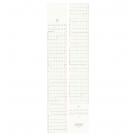リフィルをじゃばら状に折り畳むことで1年間のスケジュールをコンパクトに持ち歩くことができます。裏表1面ずつに全体カレンダーがあり、残り片面9面ずつに月間ブロックタイプの予定表を配置。予定表は1面に3週ごと掲載しており計54週をこの1枚で管理できます。月の切れ目がないデザインで、月末月初を連続して見られることも特徴です。用紙は上質紙として定評のある「淡クリームキンマリ」を使用。