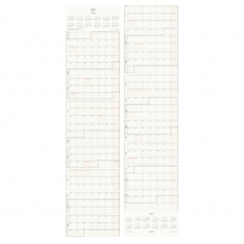 リフィルをじゃばら状に折り畳むことで1年間のスケジュールをコンパクトに持ち歩くことができます。裏表1面ずつに全体カレンダーがあり、残り片面9面ずつに月間ブロックタイプの予定表を配置。予定表は1面に3週ごと掲載しており計54週をこの1枚で管理できます。月の切れ目がないデザインで、月末月初を連続して見られることも特徴です。用紙は上質紙として定評のある「淡クリームキンマリ」を使用。