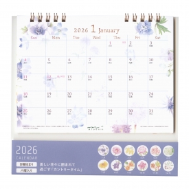 優しく可憐で、女性らしい雰囲気が人気の『カントリータイム花柄』カレンダー。手軽で使いやすい卓上タイプです。
