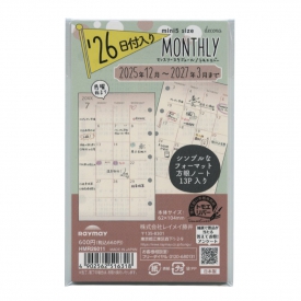 > 2026年 ミニ5サイズ decona 月間1 システム手帳リフィル
