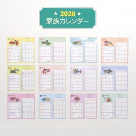 人気のピクサーキャラクターの家族カレンダーです。4人分の家族のスケジュールがひと目でわかる使いやすいカレンダーです。