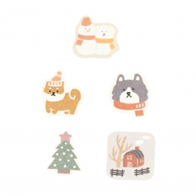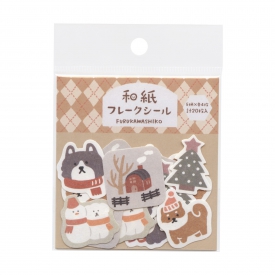 和紙フレークシール 冬柄【いぬと雪】かわいい
