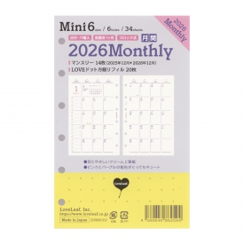 > 2026年 ミニ6穴 月間ブロック 見開き システム手帳 リフィル