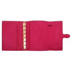 ベルトの先端が内側に隠れるシンプルな見た目が特徴の「カクシシリーズ」のミニ6サイズシステム手帳です。表側にはレーデルオガワ製の「アサギリコードバン」を使用。「アサギリコードバン」は初めはマットな表面で、次第に朝霧が晴れ渡るように徐々に美しい艶へと変化していきます。内側にはイタリア・ヴィルジリオ社製のスクラッチ加工が特徴のマルゴーを使用。染料染めの色味の深さと独特な光沢があり少しづつ色艶を増す経年変色が楽しめます。リングはクラウゼ社製。