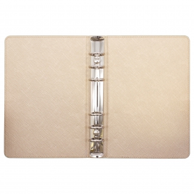 DUO手帳は「シンプルイズベスト」がテーマの手帳シリーズ。高級感のあるサフィアーノレザー調の素材を採用。シボのある質感が美しく手にしっくりとなじみます。内と外には違う空が使われたデュオカラーで上品でしなやかなシステム手帳です。ポケットも仕切りもなく文庫本1冊分の軽さです。スリムなデザインながらしっかり書き込める大容量。リング径は20mmと十分なサイズで約160枚を余裕で収納可能。表と裏それぞれの色に合わせた糸を使い手帳全体に馴染むよう丁寧に仕立てました。手帳のサイドは職人の手作業による丁寧なコバ加工。角をなめらかに仕上げることで、見た目の美しさだけでなく手に持ったときの心地よさも追求しています。