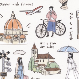 おしゃれな女の子のイラストが描かれているシールです。周りの英字もカットすればシールとして使えます。