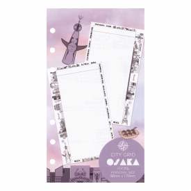 5.5x5.5mmの方眼メモを縁取るようにランドマークや街並みのイラストが入ったリフィルです。最上部には題名を書けるタイトル欄もあります。裏表異なるデザインなので見開きにすると違うデザインが並びます。30枚入。
