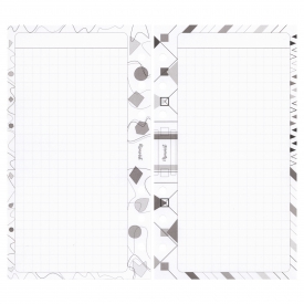 5.5x 5.5mmの方眼メモを縁取るようにイラストが入ったリフィルです。最上段には題名を書けるタイトル欄もあります。3デザイン・各10枚。合計30枚入り。