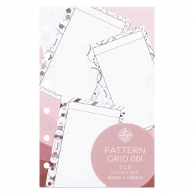 5.5x 5.5mmの方眼メモを縁取るようにイラストが入ったリフィルです。最上段には題名を書けるタイトル欄もあります。3デザイン・各10枚。合計30枚入り。