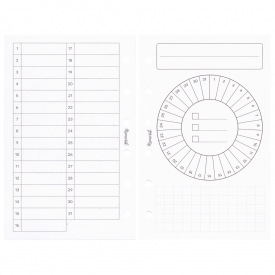 続けたい習慣を記録し達成度を視覚化して習慣化を支援する、メモリストブランドのリフィルです。複数の種類があり、シンプルな「BASIC」や、達成度を色分けできる「COLOR」、1ヶ月分を管理できる「MULTI」など、用途に合わせて選べます。?