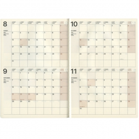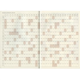 ページ構成は見開き1ヶ月のガントチャート&見開き4ヶ月のブロックタイプマンスリーのリフィル。ガントチャートのページ下半分がグリッドスペースになっており、図形やアイデアなど自由に書き込める設計です。