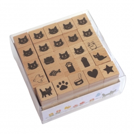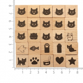 ウッドスタンプ【黒猫セット】手帳デコ 木製ハンコ