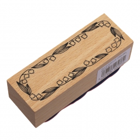 ウッドスタンプ 70×25mm【スズランのフレーム】手帳デコ 木製ハンコ
