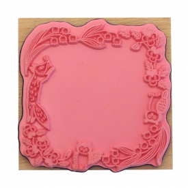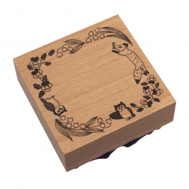 押すたびに仕上がりが変わるウッドスタンプは使う人の気持ちが伝わる温かさがあります。インクの色やかすれ具合などお気に入りの絵柄で楽しめます。幸運を呼ぶ動植物の絵柄をモチーフに円形や四角形などの枠がデザインされています。