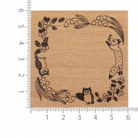 ウッドスタンプ 60×60mm【狐とフクロウ】手帳デコ 木製ハンコ