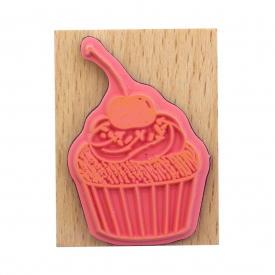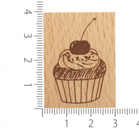 > ウッドスタンプ 40×30mm【さくらんぼのカップケーキ】手帳デコ 木製ハンコ