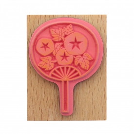 ウッドスタンプ 40×30mm【うちわ(朝顔)】手帳デコ 木製ハンコ