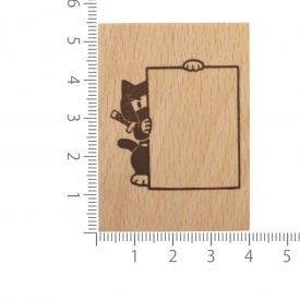 > ウッドスタンプ 55×44mm【猫忍者(隠れ身の術)】手帳デコ 木製ハンコ