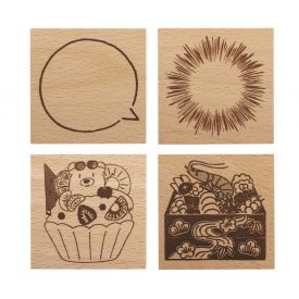 押すたびに仕上がりが変わるウッドスタンプは使う人の気持ちが伝わる温かさがあります。インクの色やかすれ具合などお気に入りの絵柄で楽しめます。