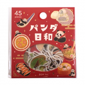 和紙素材のフレークシールです。大人気のパンダが、ついにシリーズになって登場。小籠包、餃子、麻婆豆腐などパンダちゃんが本場の味を運んできました。パンダちゃんをモチーフにしたスイーツや王道のパンダデザインも多数あり。癒しを与えてくれるパンダデザインです。15柄各3枚計45枚入り。
