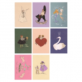 くらはしれいさんの素敵な世界観を堪能できるポストカードです。デザインごとに異なる、風合いのある特殊紙を使用しており、イラストの魅力を最大限に引き出しています。また、箔押し、エンボス(浮き出し加工)、厚盛ニスといった複数の加工が施されており、触感や視覚的な楽しさも味わえます。大切な人へのメッセージカードとして贈るだけでなく、額に入れてインテリアとして飾るのもおすすめです。