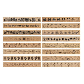 押すたびに仕上がりが変わるウッドスタンプは使う人の気持ちが伝わる温かさがあります。インクの色やかすれ具合などお気に入りの絵柄で楽しめます。紙テープ、マスキングテープ、リボン、手帳やノートなどに使えます。