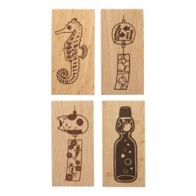 > ウッドスタンプ 40×20mm【風鈴(猫)】手帳デコ 木製ハンコ