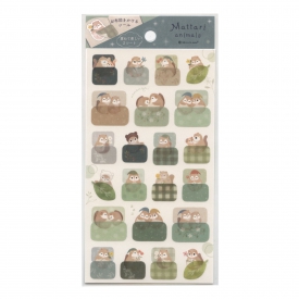 まったり暮らす動物たちのそれぞれの夜を描いたシリーズのシールです。お布団シールは貼ってはがせる素材でアニマルに重ねて楽しめます。手帳のデコレーションなどにもおすすめです。2柄各1枚入。