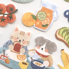 ぽてっとしたフォルムが可愛いイラストのシールです。ピースの外側にフチがなく透けにくい紙素材なので、色紙の上に貼っても自然に仕上がります。