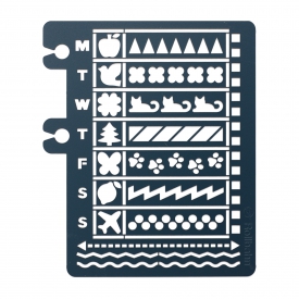 薄手のステンレス素材で作られた、縦に1週間のカレンダーが描けるロルバーン専用のテンプレートです。予定管理やライフログに機能と楽しさをプラスするアクセサリー。四角のマークはTO DOリストを作成できます。お花やネコのラインのモチーフはページの区切り線として使ったり、林檎や飛行機などのマークなどは目立たせたい予定の上から描きこんだりと用途に合わせて選べます。ロルバーンポケット付メモLサイズの1ページには最大4週間分、Mサイズには1週間のカレンダーを描くことができます。