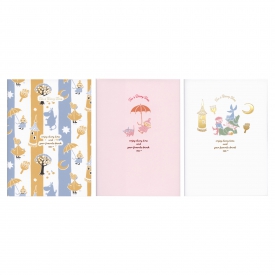 「夜とカフェオレと日記帳」に、ムーミン小説出版80周年限定デザインが登場。2025年限定の80周年アートを使用した今回だけの特別デザインの日記帳です。1日の終わりに「今日のふり返り」と「明日やること」を書くレイアウトが特長の日記帳。全ページフルカラーで80周年限定のアートが毎日を彩ります。本文は4柄ごとの繰り返しで毎日書いても飽きのこないデザインです。