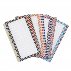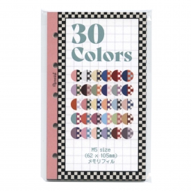 どこか懐かしいレトロカラーの組み合わせで作ったチェックデザイン。チェックの枠がページ全体をぐるっと縁取り。30色入りの豪華セット。何と全ページ30色すべて違う色!贅沢で特別感のあるセットです。中身はメモやリストを書きやすい、すっきり見やすい方眼レイアウト。どんな用途にも使いやすい万能タイプです。