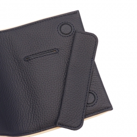 KNOX45周年を記念し「包み込む」シリーズがミニサイズで定番化。“小さな宝箱、大きな思い出”をコンセプトに風呂敷のように包み込む独創的なデザインはそのままに、よりコンパクトで軽やかに。素材にクールなシュリンクエンボスレザーを採用。職人技「挟み玉」で手帳のエッジをナチュラルタンレザーで縁取り、さまざまな素材のコントラストと経年変化が楽しめて使うほどに自分だけの“宝物”へと育っていきます。短めの万年筆にもフィットするペンシース付き。