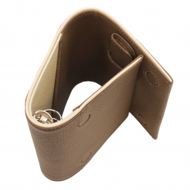 KNOX45周年を記念し「包み込む」シリーズがミニサイズで定番化。“小さな宝箱、大きな思い出”をコンセプトに風呂敷のように包み込む独創的なデザインはそのままに、よりコンパクトで軽やかに。素材にクールなシュリンクエンボスレザーを採用。職人技「挟み玉」で手帳のエッジをナチュラルタンレザーで縁取り、さまざまな素材のコントラストと経年変化が楽しめて使うほどに自分だけの“宝物”へと育っていきます。短めの万年筆にもフィットするペンシース付き。