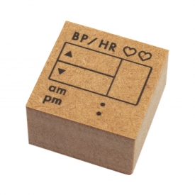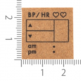 最高血圧・最低血圧・脈拍をすっきり記録できる、健康管理用のスタンプです。白抜きのハートが2つ並んでおり、1日2回測定する方は、塗りつぶすことで「1回目・2回目」を区別できます。測定した時間を記入できるスペースもあり、朝・夜の変化を見比べたり継続的な記録に便利です。