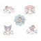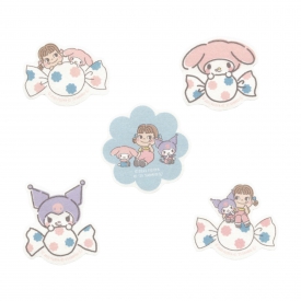 おそろいの服を着たサンリオキャラクターたちとペコちゃんが大集合したフレークシールです。ペコちゃんと同じ表情をまねっこしている姿がとってもキュート。仲良しな雰囲気と特別感あふれるデザインで見ているだけで笑顔になれるコラボです。