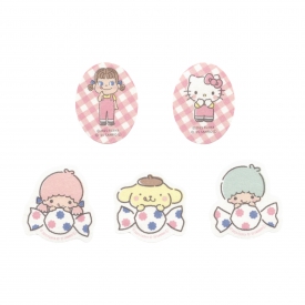 おそろいの服を着たサンリオキャラクターたちとペコちゃんが大集合したフレークシールです。ペコちゃんと同じ表情をまねっこしている姿がとってもキュート。仲良しな雰囲気と特別感あふれるデザインで見ているだけで笑顔になれるコラボです。
