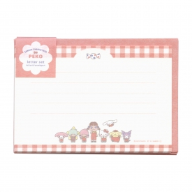 おそろいの服を着たサンリオキャラクターたちとペコちゃんが大集合したレターセットです。ペコちゃんと同じ表情をまねっこしている姿がとってもキュート。仲良しな雰囲気と特別感あふれるデザインで見ているだけで笑顔になれるコラボです。和紙の温かみある手触りが魅力のレターセット。